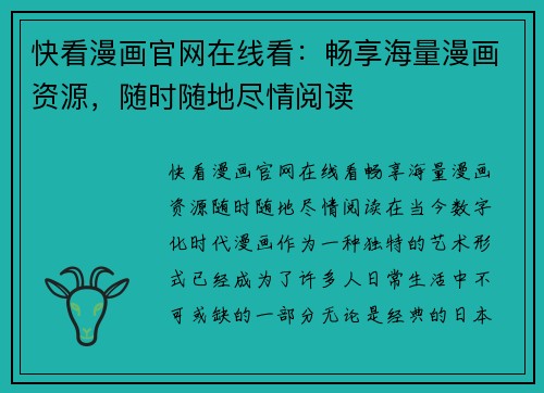 阅读《影音先锋 漫画:探索最新热门漫画资源与观看技巧分享》 在当今数字化时代,漫画已经成为了许多人日常生活中不可或缺的一部分。无论是日本的动漫,还是国内的原创漫画,丰富多彩的故事情节和精美的画风都吸引...